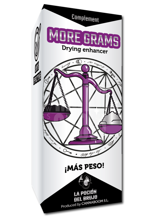 MORE GRAMS to unikalna formuła na świecie: sprawia, że rośliny tracą mniej na wadze w procesie suszenia. Działa poprzez zwiększenie retencji wody w kwiatach, nawadnia przestrzeń między włóknami i pozwala na przyswojenie tej bogatej w składniki odżywcze wody w końcowej fazie kwitnienia. Masa organiczna wzrośnie tuż przed cięciem, dzięki czemu kwiat straci 10% / 20% mniej na wadze podczas fazy suszenia.
