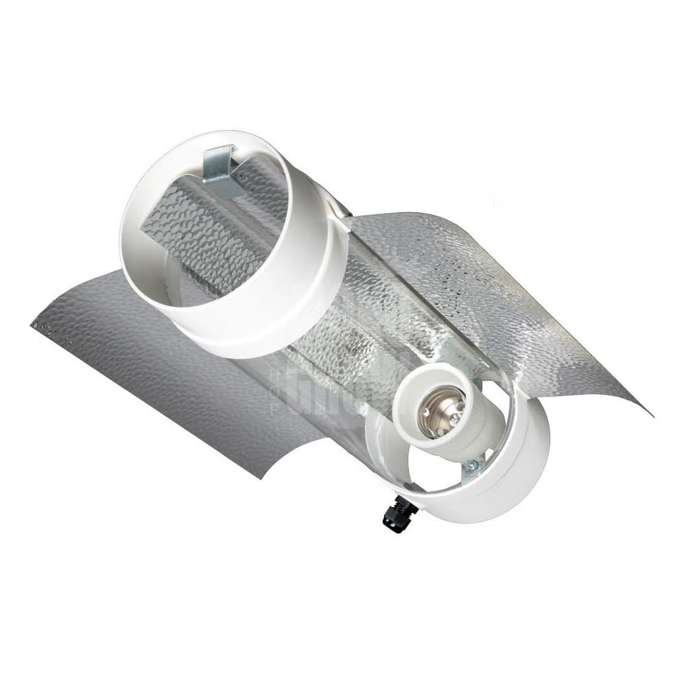 COOLTUBE przeznaczona do układu wentylacyjnego fi 125mm, równomiernie rozprowadzająca światło, wykonana z aluminium o specjalnej fakturze + dwa skrzydła wspomagające + osłona wykonana ze szkła, gniazdo żarówki E40 - pod HPS i MH 100W, 150W, 250W, 400W, 600W!