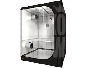Wykonany z grubego wytrzymałego materiału 190D (możliwość prania), wzmocnione narożniki, duże solidne ekspresy, GrowBox w 100% światłoszczelny. Wewnętrzna powłoka 95% iluminacji, bardzo łatwy w montażu, posiada lekki stalowy stelaż, dwa paski mocujące filtr o długości 80 cm, maksymalna nośność konstrukcji to 20kg. Dodatkowy materiał wodoodporny, chroni dno naszego boxa przed wilgocią i zabrudzeniem, 1 otwór wentylacyjne na dole i 1 na górze GrowBox’a,i 1 na okablowanie oraz 1 na CoolTube. U dołu znajduje się wywietrznik przysłonięty siatką, który pomaga w wentylacji, oczywiście w każdej chwili możemy go zasłonić (rzep). Waga 13,8 kg.