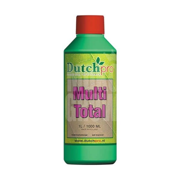 DutchPro Multi Total zamienia materie organiczne obumarłych roślin w wartościowy nawóz. Stymuluje to wzrost korzeni oraz poprawia jednocześnie strukturę podłoża i retencję wody, a także stymuluje wytwarzanie składników odżywczych oraz rozwój bakterii w podłożu. Multi Total pobudza wymianę kationową substancji mineralnych i mikroskładników, wzmacnia odporność na grzyby i stresujący wpływ środowiska. Nadaje się dla każdego systemu nawadniania, a także dla większości rodzajów gleby, zestawów hydro i kokosowych.