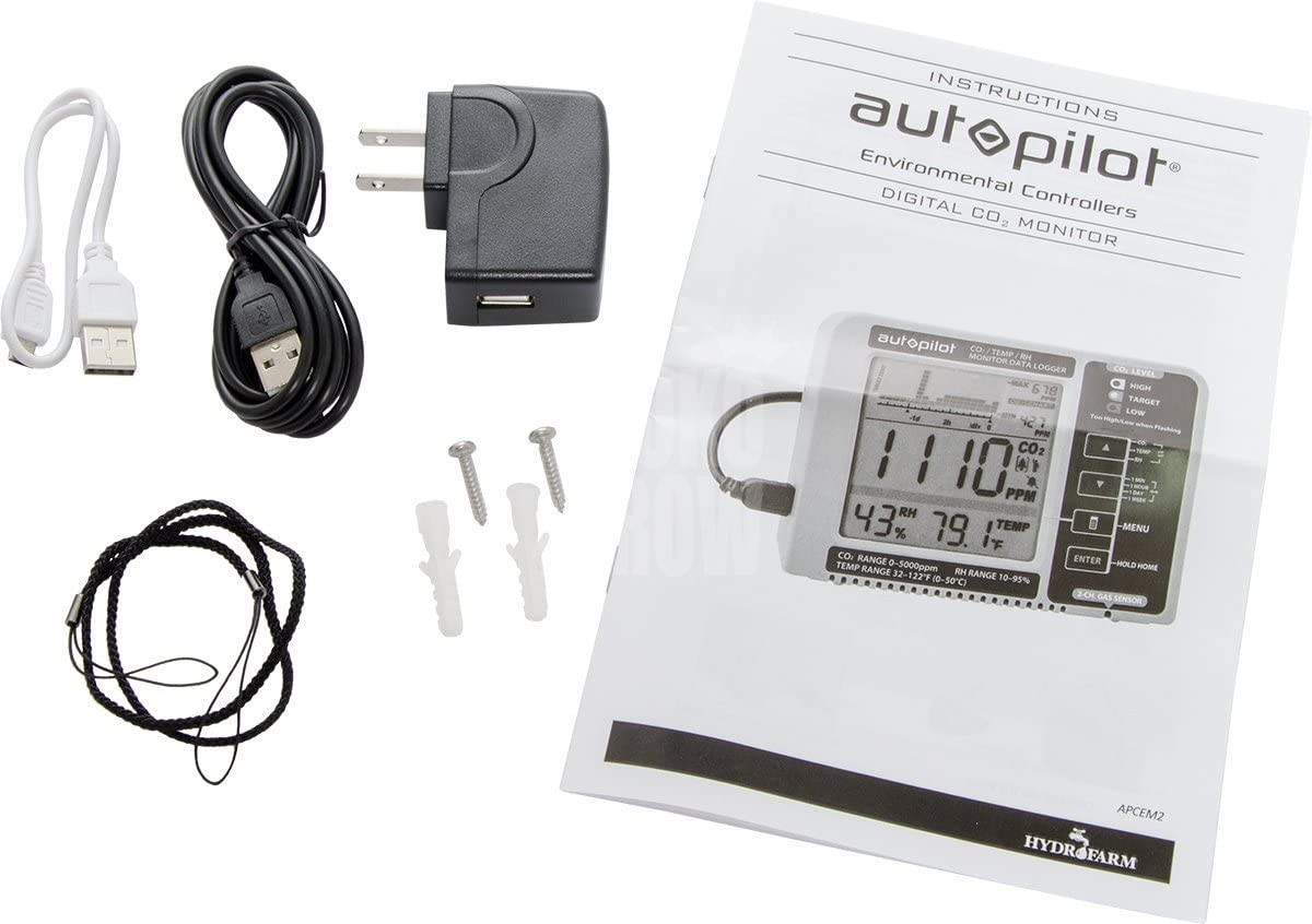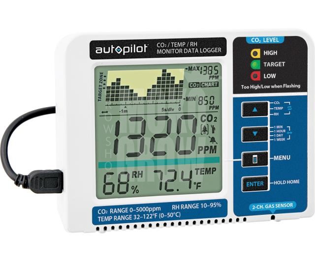 ELEKTRONICZNY MONITOR CO2 + TEMP. + RH, DO POMIARU CIĄGŁEGO - AUTOPILOT HYDROFARM, Miernik CO2, 120x91x27cm, do uprawy, do boxa