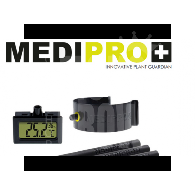TermoHigrometr MEDIPRO to niezwykle przydatne urządzenie pomiarowe 2w1, higrometr + termometr. Prócz dokładnego pomiaru wilgotności i temperatury MEDIPRO oferuje nam rozwiązanie, które może ułatwić uprawę wielu hodowcom. Jest nim uchwyt z regulacją długości, do zamontowania przy gnieździe żarówki (E40). Uchwyt ten jest odporny na działanie wysokiej temperatury.