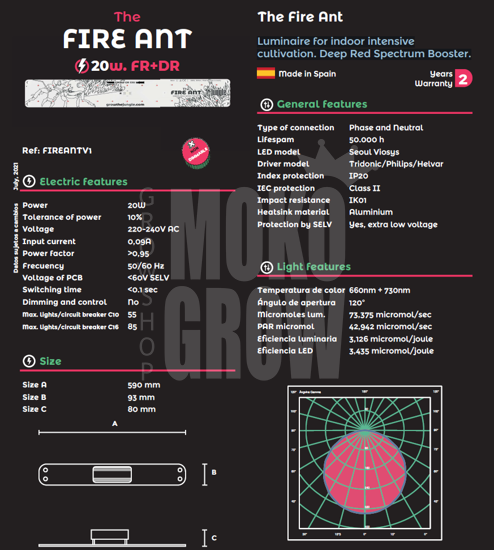 Fire Ant to oprawa LED, która łączy w sobie 660nm + 730nm, unikalne na rynku, dzięki czemu możesz zapewnić swoim roślinom dzienną ilość światła potrzebną do maksymalnego zwiększenia plonów.