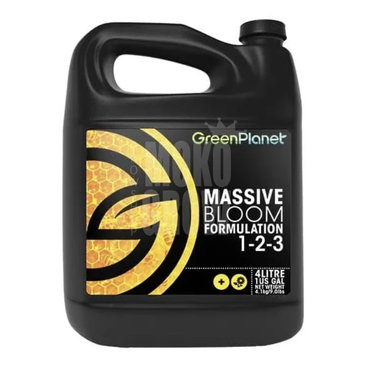 Green Planet Massive Bloom to doceniany na świecie dodatek do kwitnienia. Massive Bloom to odżywka na kwitnienie pochodzenia organicznego, wzbogacona o wszystkie niezbędne mikroelementy: zwiększające wielkość kwiatów, smak, podział komórek, zdrowie, kolor i plon. Hodowcy zachwycają się tym, jak dobrze działa preparat Massive Bloom , w związku z czym hodowcy zgłaszają wzrost suchej masy o ponad 30%.