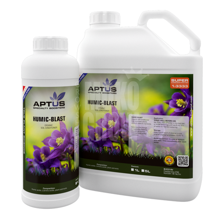 Jest to organiczna odżywka do gleby, która poprawia zdolność roślin do wchłaniania składników odżywczych, równoważy składniki w podłożu, tworząc przewiewną strukturę gleby która poprawia retencję wody. Humic-Blast neutralizuje gromadzenie się kwasów i soli w medium uwalniając zablokowane składniki odżywcze. Humic-Blast jest bogaty w humusy węglanowo - potasowe i jest uzupełniony naturalnymi hormonami roślinnymi i mikroelementami.