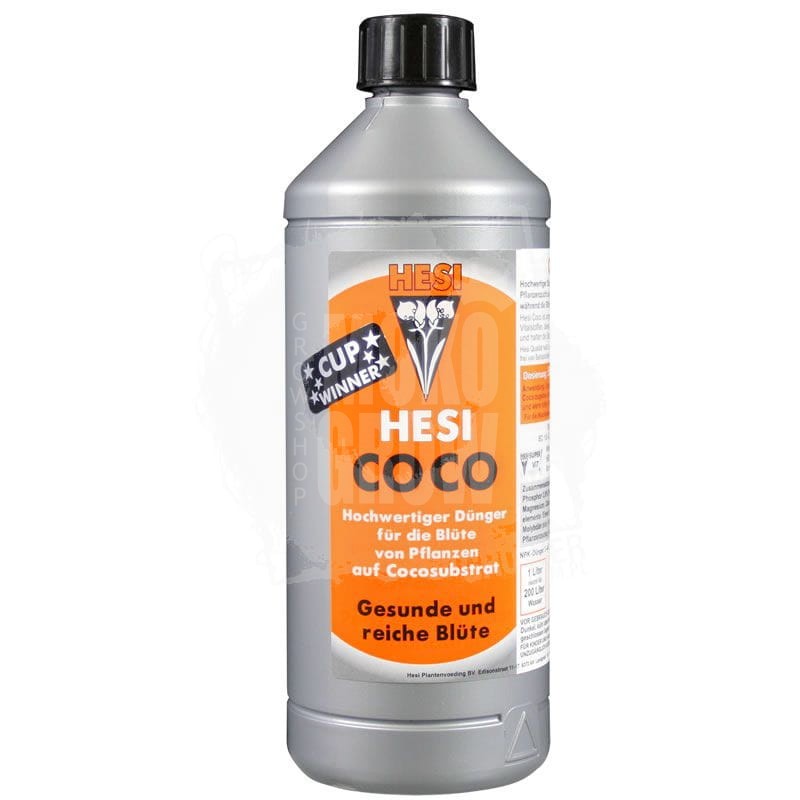 Hesi Coco dodatkiem do kwitnienia w substancjach coco. Jak wszystkie dodatki HESI, Hesi Coco jest zrównoważony dzięki kompleksowi substancji wiążących i jest on wolny od niepotrzebnych obciążeń.Hesi Coco nie jest nawozem A & B, składniki A+B są połączone w jednej butelce. Hesi Coco zawiera zarówno azot organiczny jak i mineralny. Wszystkie mikroelementy zostały zrównoważone w ochronnych związkach i wzbogacone witaminami oraz innymi substancjami odżywczymi ważnymi dla kwitnienia. W ten sposób uzyskujemy w systemie perfekcyjną równowagę i gwarantuje szybką odbudowę zdrowej mikroflory. Możliwe, że EC w Hesi Coco jest nieco niższe niż w innych dodatkach coco, ponieważ nie dodano soli, która podniosłaby tylko wartość EC, nie mając jakichkolwiek wartości odżywczych dla rośliny. Dlatego też ważne jest, by nie przekroczyć maksymalnej dawki 50 ml / 10 L.