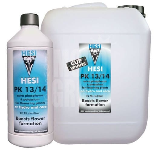 W okresie kwitnienia rośliny mają zwiększone zapotrzebowanie na fosfor i potas a poprzez zastosowanie PK 13/14 całkowicie zaspokajamy tą potrzebę.Okres kwitnienia to najważniejsza faza w życiu rośliny. Metabolizm funkcjonuje wtedy na pełnych obrotach i wytwarzane są olbrzymie ilości enzymów do kwitnienia. Poza tym roślina staje się większa, przez co potrzebuje więcej składników. Konkretne substancje odpowiedzialne za wzrost rośliny to fosfor (enzymy i cechy dziedziczne) i potas (za transport w obrębie rośliny).Aby mieć pewność, że roślina nie jest niepotrzebnie obciążona solą, czy jej nadmiarem za wcześnie, Hesi PK 13/14 powinien być używany podczas drugiej połowy kwitnienia do tygodnia przed zakończeniem cyklu. Należy dozować stopniowo większe dawki w czasie końcowych tygodni okresu kwitnienia. PK 13/14 jest zbalansowany (przez wykres kultywacji coco lub woda) do Hesi Hydro Bloo i Hesi Coco.