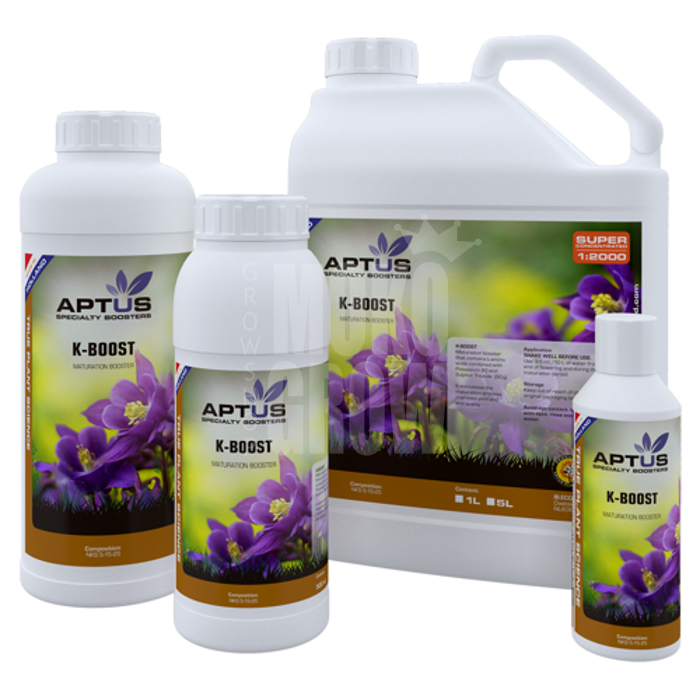 Rośliny wymagają więcej potasu podczas fazy dojrzewania. K-Boost zawiera potas (K) i lewoskrętne aminokwasy. Jest w pełni rozpuszczalny w wodzie i nie pozostawia osadu. K-Boost to organiczno-mineralny produkt, który wyróżnia biodostępność składników aktywnych. Ma silny stymulujący wpływ na proces dojrzewania, zwiększa wydajność i poprawia jakość.