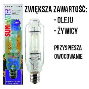Lampa Sunmaster - FINISHING DELUXE UV została stworzona przede wszystkim na ostatnie 10-14 dni kwitnienia aby zwiększyć produkcję żywicy / oleju w roślinach, co w praktyce oznacza wyższy plon (żywica nie odparowuje).