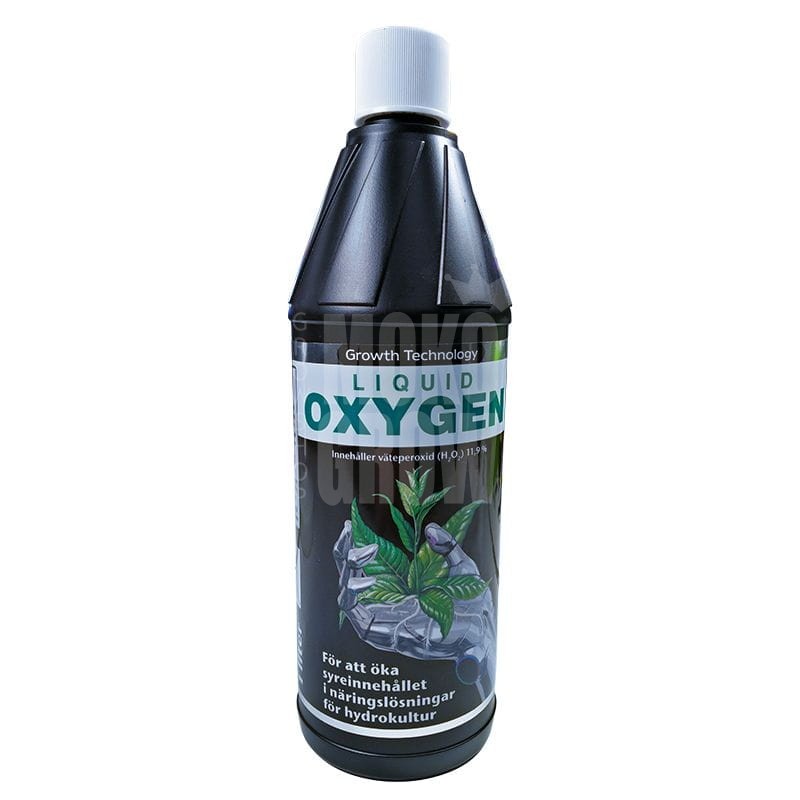 Liquid Oxygen od firmy Growth Technology to środek zwiększający zawartość tlenu w pożywce. Użytkownicy systemów hydroponicznych docenią ten produkt zwałszcza, jeśli nie ma możliwości zamontowania pompy powietrza. Liquid Oxygen zawiera nadtlenek wodoru (H2O2), który jest zabójczy dla: grzybów, wirusów i patogenów nie wyrządzając przy tym szkody rośliną. Liquid Oxygen pomoże wyeliminować istniejące choroby, a na przyszłość pomoże zapobiegać podobnym sytuacją. Czysty i dotleniony korzeń to większa absorbcja składników odżywczych, co bezpośredio przekłada się na zwiększony plon. Przy większych stężeniach Liquid Oxygen będzie idealnym środkiem do sterylizacji używanych wcześniej zbiorników hydroponicznych, systemów, pomp etc.
