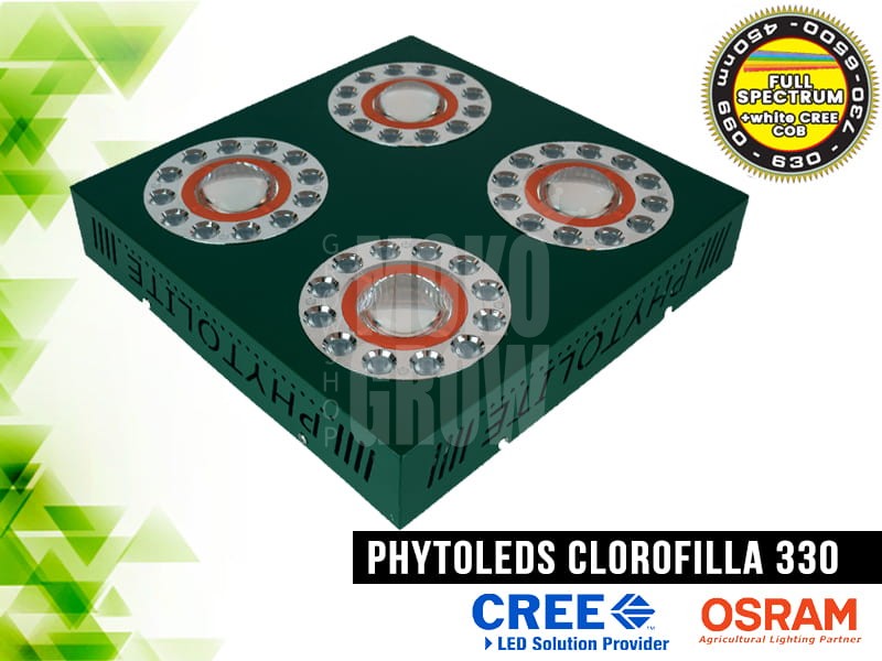 CLOROFILLA Lampa led do uprawy roślin, 35% wydajniejsza od najlepszych obecnie na rynku, na fazę wzrostu i kwitnienia. Jest ważnym połączeniem pomiędzy solidnym doświadczeniem Phytolite w projektowaniu lamp do upraw wewnętrznych a 2 z najważniejszych przedsiębiorstw na świecie specjalizujących się w projektowaniu i produkcji lamp LED: CREE oraz Osram.