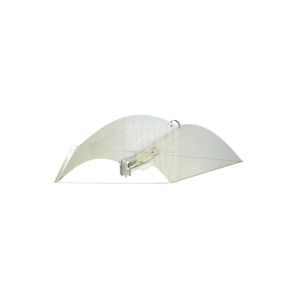 - dzięki konstrukcji odbłyśnika Adjust-A-Wings Defender White w połączeniu z Super-Spreaderem (brak w zestawie) redukcja szkodliwego ciepła z lampy HPS i MH pozwala zbliżyć światło do 44% bliżej rośliny