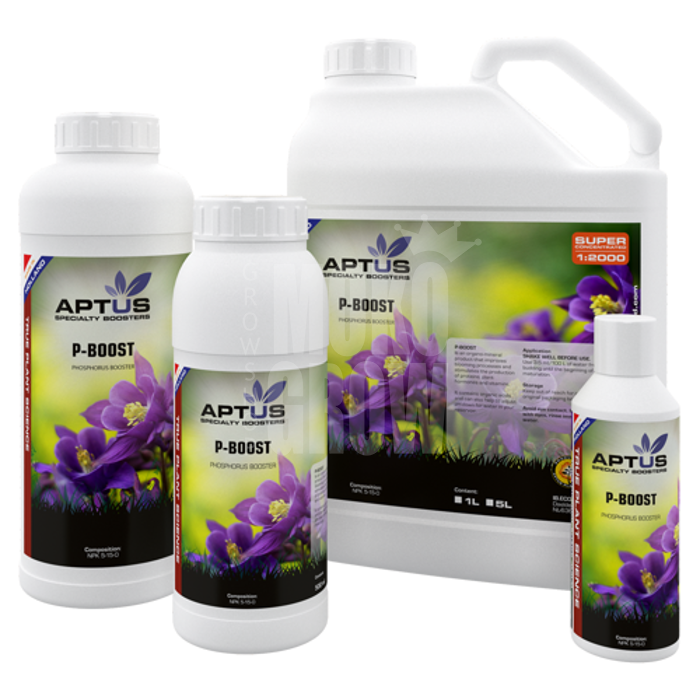 W fazie kwitnienia rośliny mają zwiększone zapotrzebowanie na fosfor. P-Boost zawiera fosfor i lewoskrętne aminokwasy. P-Boost jest w pełni rozpuszczalny w wodzie i nie pozostawia żadnych pozostałości. P-Boost jest organiczno-mineralnym produktem, który wyróżnia biodostępność aktywnych składników stymulujących kwitnienie. P-Boost ma silne działanie stymulujące proces kwitnienia, a także stymuluje produkcję białek, hormonów roślinnych i witamin, jednocześnie zapewniając optymalne wsparcie podczas fazy kwitnienia.