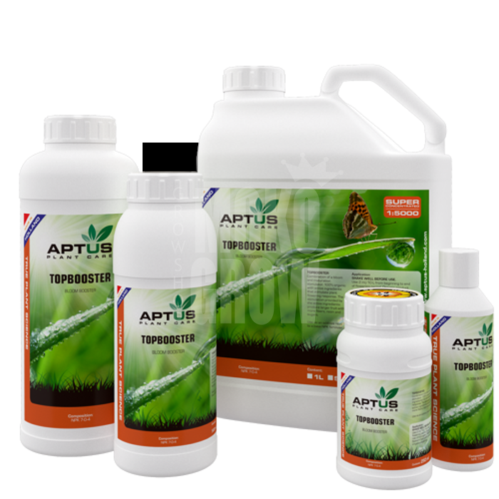 Topbooster to połączenie stymulatora kwitnienia i dojrzewania. Podobnie jak Startbooster, jest mocno skoncentrowanym produktem, który zawiera wiele aktywnych składników, które wszystkie mają stymulujący wpływ na proces kwitnienia. Topbooster daje duże pąki kwiatowe wypełnione dużą ilością włókien, żywic i cukrów. Rośliny potraktowane za pomocą Topbooster będą wyróżniać się jakością produktu końcowego. Żaden inny produkt nie ma tak silnego wpływu na wygląd i smak. Topbooster jest bardzo skoncentrowany, a przez to tani w użyciu. Mała butelka często wystarcza do pełnego cyklu wzrostu, ponieważ stosuje się małe dawki.
