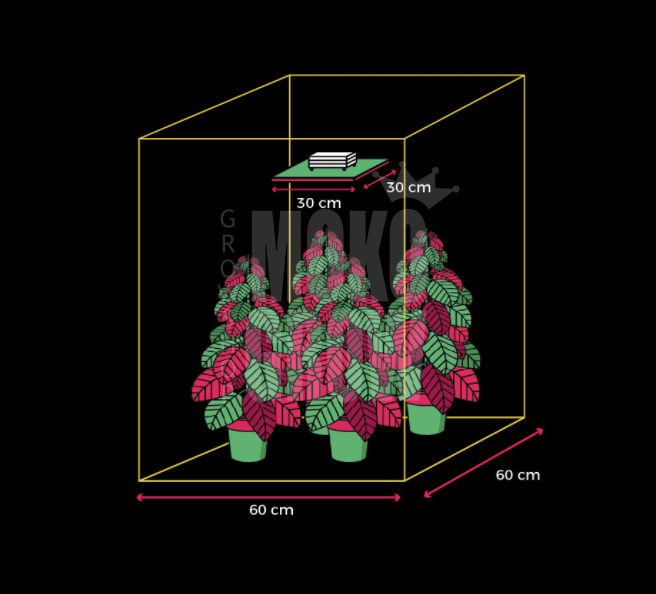 W przypadku roślin matecznych naszą wskazówką jest utrzymanie światła na wysokości 40 cm nad baldachimem rośliny, dzięki czemu uzyskasz większe pokrycie światłem.