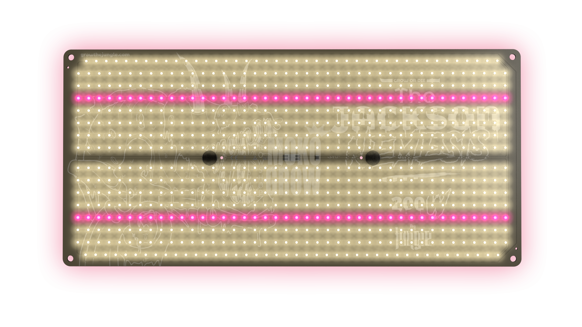 Diody zamontowane w tym panelu to 580 x Samsung LM301H 3000K (580) oraz 84 x Osram fioletowy z 12,5% niebieskim. Model LM31oH to najlepsza dioda LED do ogrodnictwa , pracuje na 3 V i jest wydajniejsza od dotychczas stosowanych. Dzięki temu tablica The Jackson Nemesis posiada więcej diod niż zwykły panel Jacksona, poprawiając jej wydajność.