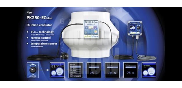 Najnowszy produkt firmy Prima Klima. Wentylator 250EC Blue z wbudowanym interfejsem do podłączenia z cyfrowym sterownikiem temperatury i prędkości. Bardzo cichy !