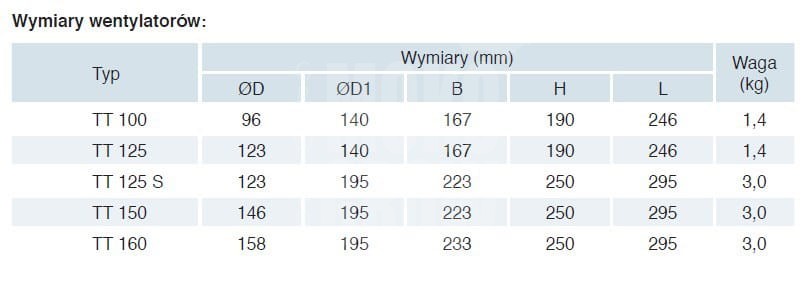 Wentylatory kanałowe o przepływie mieszanym serii TT wykorzystywane są w nawiewno-wywiewnych systemach wentylacji, które potrzebują stosunkowo niewysokiego sprężu, silnego strumienia powierza oraz niskiego poziomu hałasu. Dzięki obudowie z plastiku ABS, wentylatory nie ulegają korozji. Są znakomitym rozwiązaniem do instalacji wentylacyjnych budynków indywidualnych, zbiorowego zamieszkania oraz użyteczności publicznej. W jednym systemie możliwe jest równoległe lub szeregowe zainstalowanie pary wentylatorów. Ma to na celu zwiększenie wydajności lub podwyższenie ciśnienia. Wentylatory przystosowane są do transportu powietrza o temp. do + 60ºC. Dedykowane są do kanałów wentylacyjnych o średnicach: 100, 125, 150, 160, 200, 250, 315 mm.