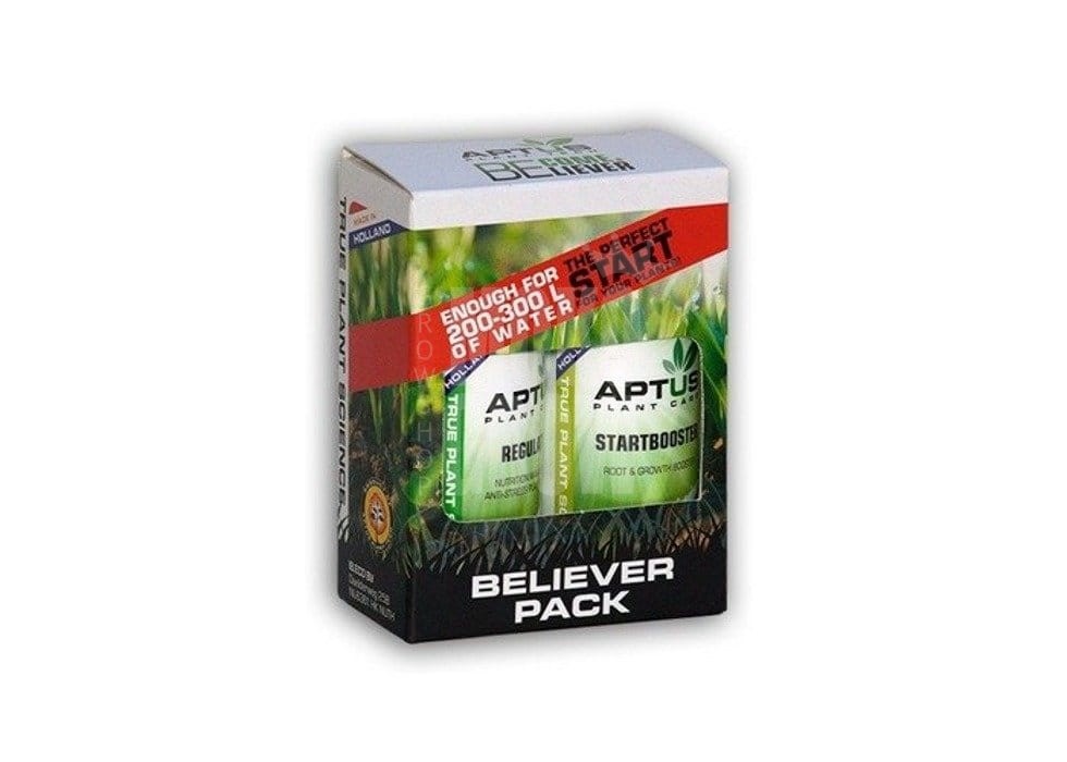 Wypróbuj Pakiet Believer w swoim ogrodzie przez tydzień i zauważ korzyści jakie daje Twoim roślinom.Startbooster to potężny wspomagający, silnie skoncetrowany bodziec. Regulator to wyjątkowa mieszanka produktów Aptus, która zarządza wszystkimi procesami uprawy i kwitnienia w roślinach.